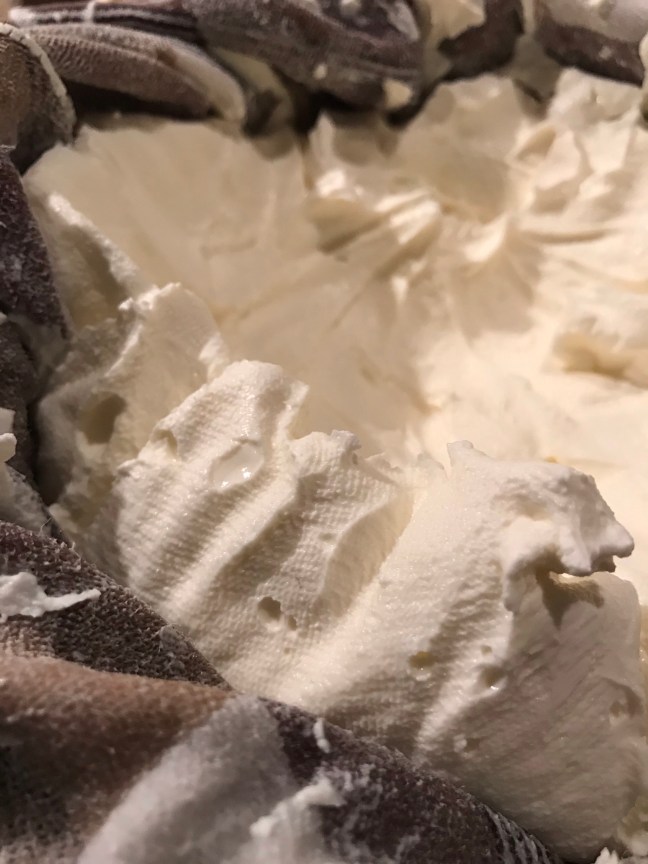 De yoghurt in de zeef met theedoek schenken en verder uit laten lekken in de koeling