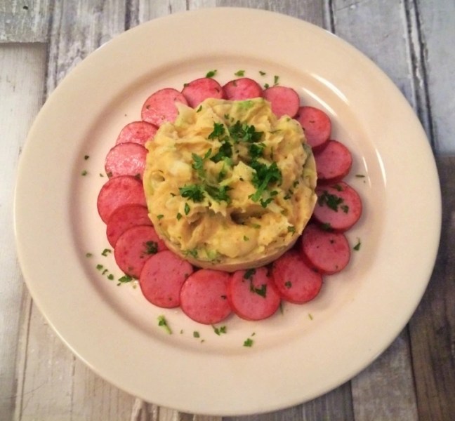Schil de aardappels, snijd ze in stukken en kook ze met een beetje zout in ca. 20 min. gaar.