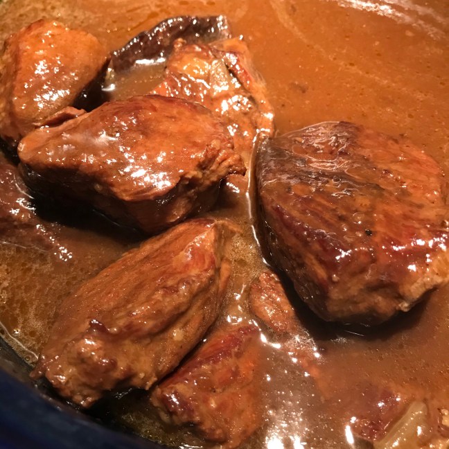 Voeg scheutje water toe langs de rand van de pan indien nodig en keer het vlees halverwege de kooktijd een keer om.