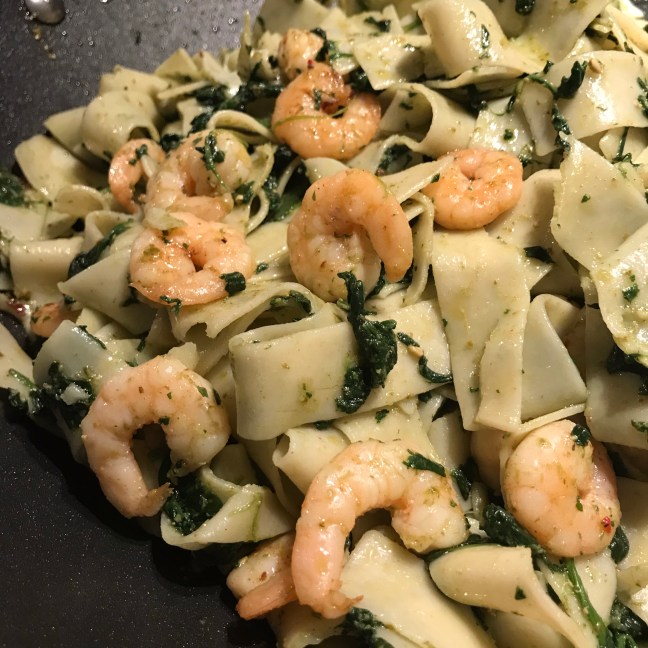 Spaghetti caprese met pesto, spinazie en pijnboompitten