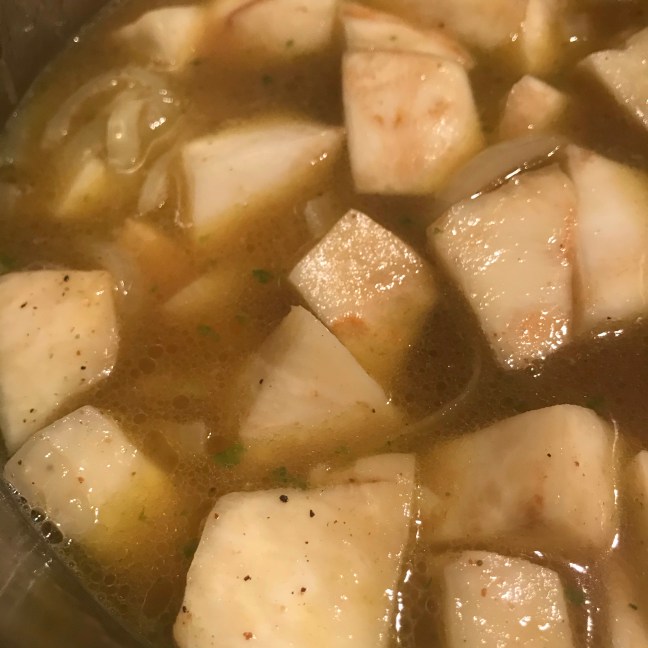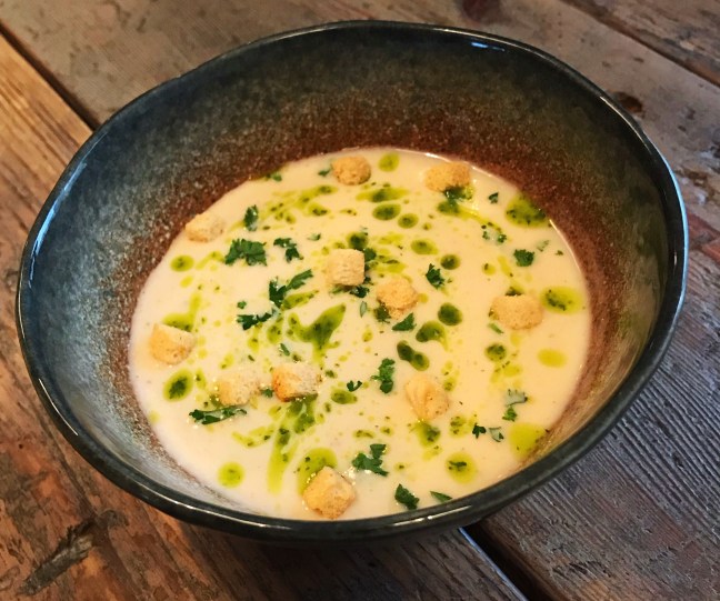 Knolselderijsoep met peterselie-olie