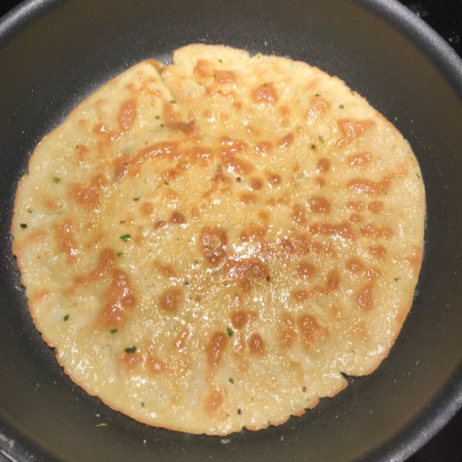 Beweeg de pan zoals je een pannenkoek maakt.