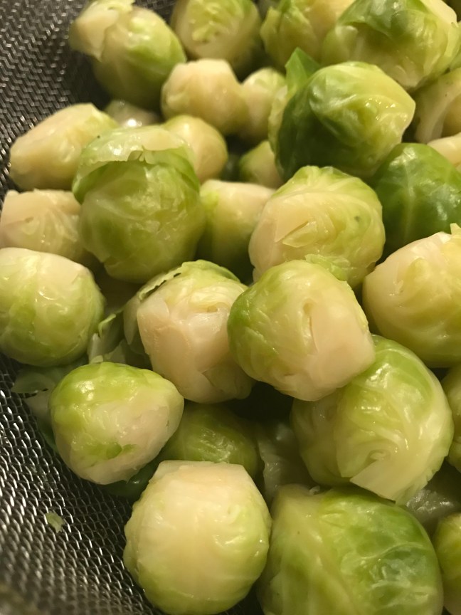 Spruitjes opzetten met een groentebouillon tablet, 10 min. koken.