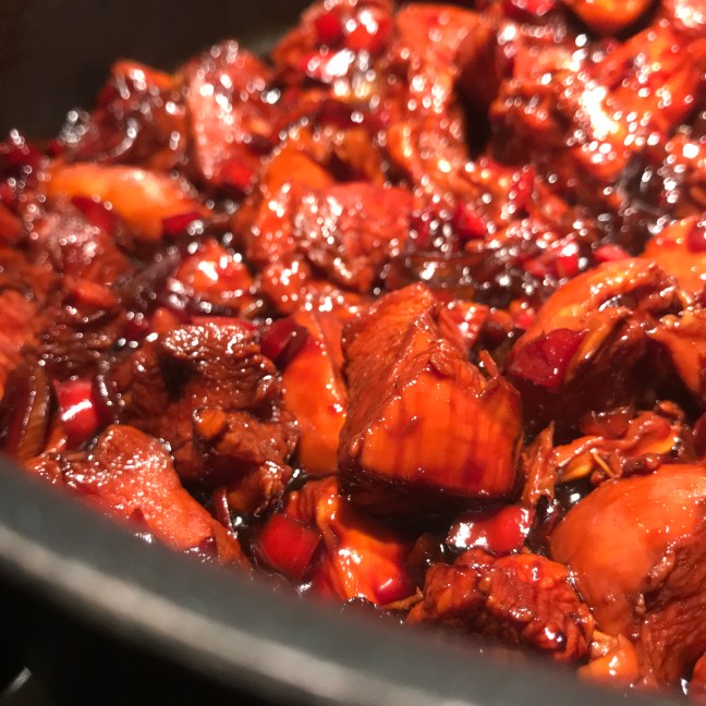 Door de kip in de ketjap te garen blijft deze lekker mals.