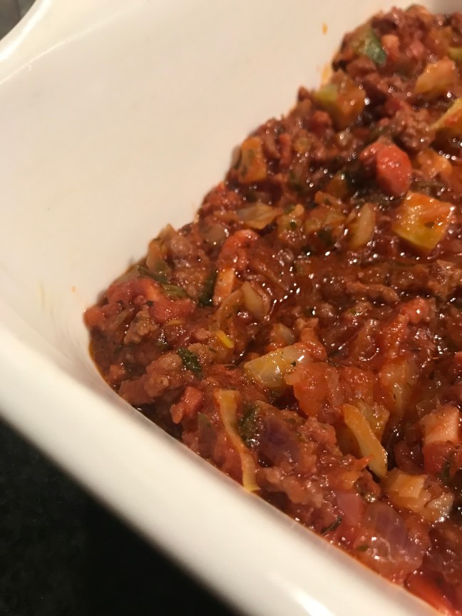 – begin met een laagje saus op de bodem van een ovenschaal