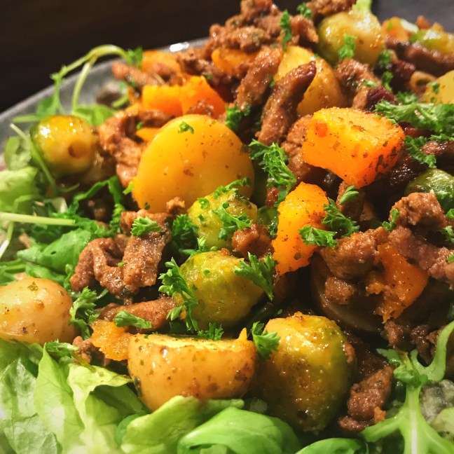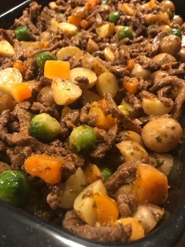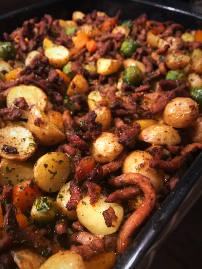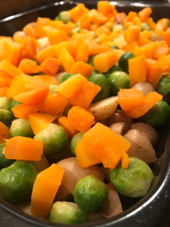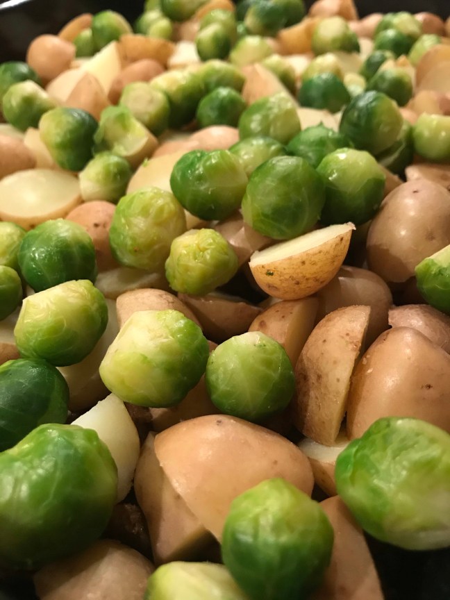 Spruitjes met krieltjes , pompoen en Gyros uit de oven