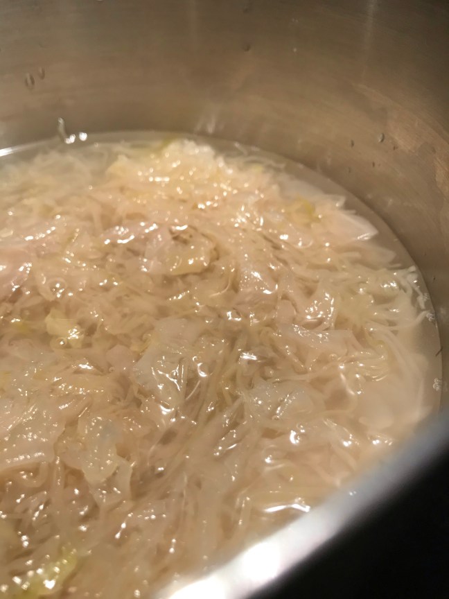Spruitjes beetgaar koken in de groentebouillon in 8 min.