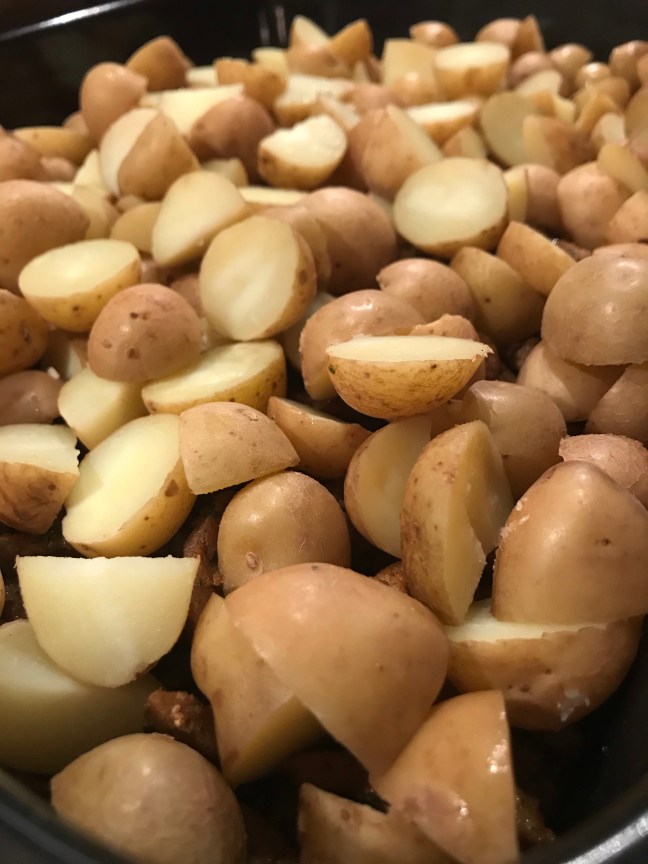 Krieltjes in schil halveren , wassen en 8 min. koken in gezouten water.