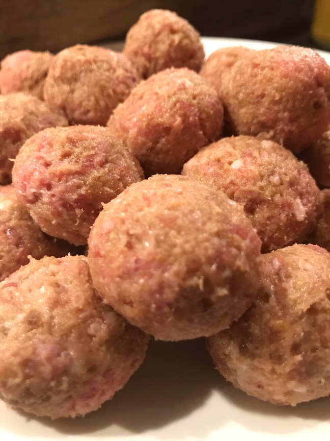 Draai balletjes van het gehakt ter grootte van een golfbal.