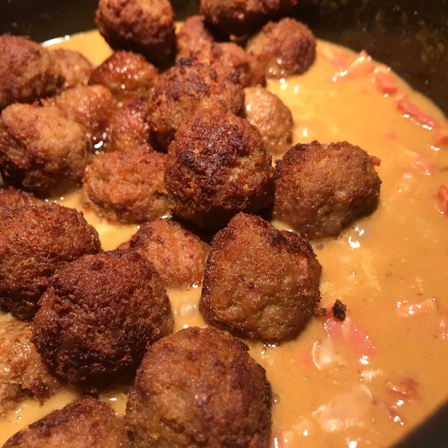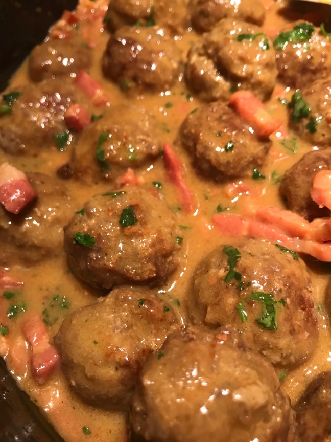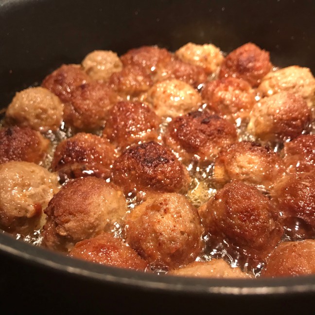 Schep de gehaktballetjes uit de pan en houd ze warm.