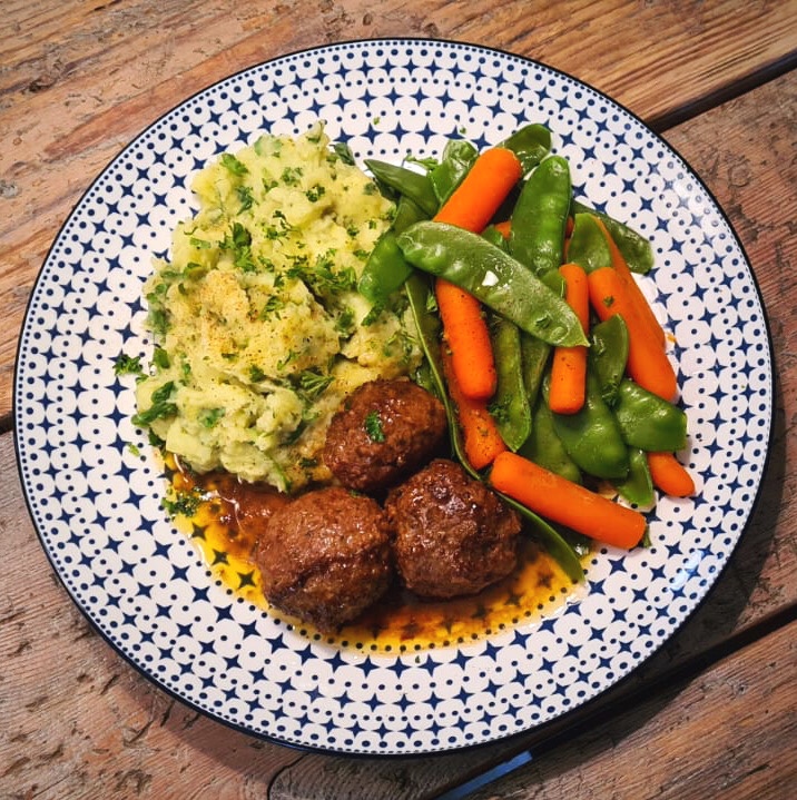 Lekker met gehaktballetjes en groente.