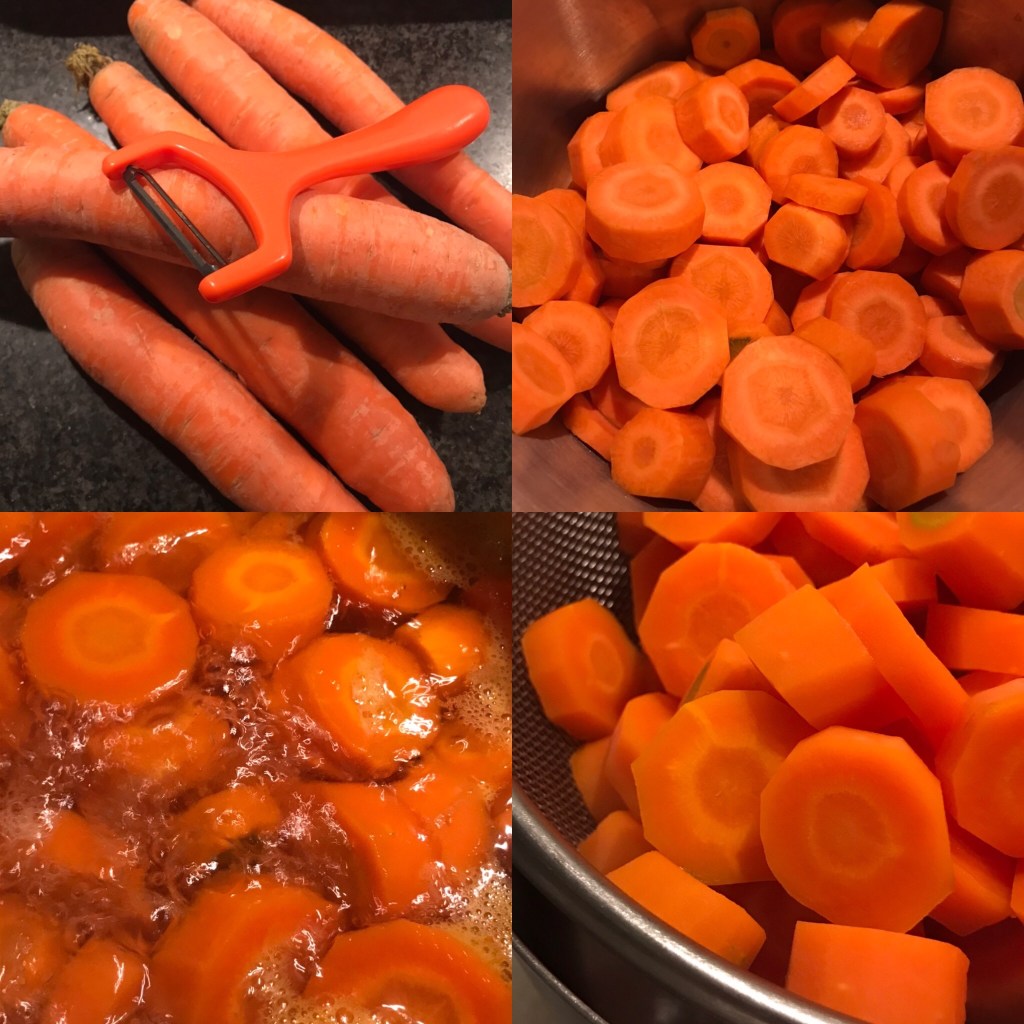 Kook de wortel in 10 min. gezouten water , afgieten en laten uitlekken.