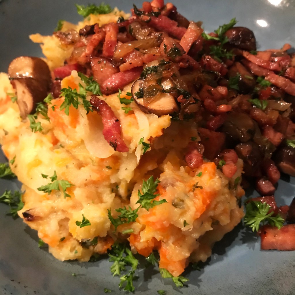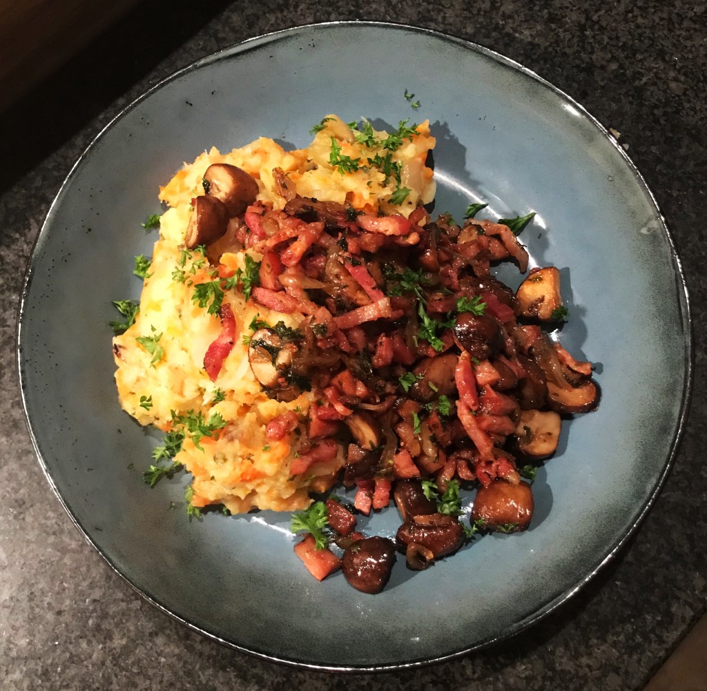Lekker met een stukje vis of gebakken spekjes met champignons en ui