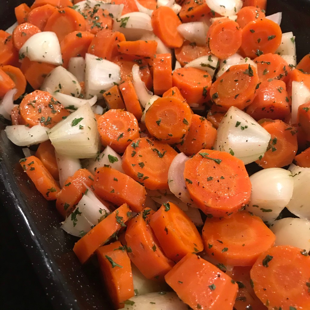 Rooster de groenten in de oven in 30 min. beetgaar.