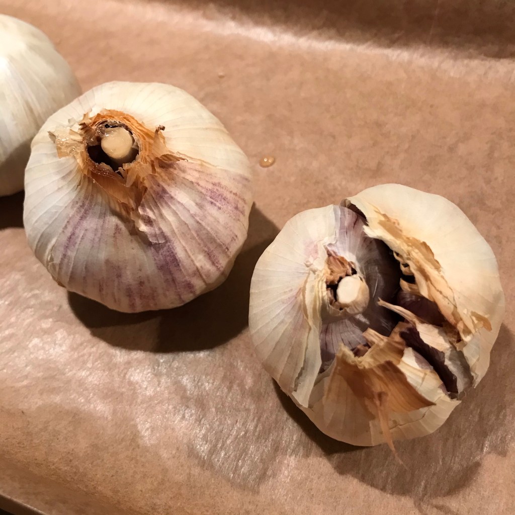 Neem de knoflook uit de oven en laat iets afkoelen.