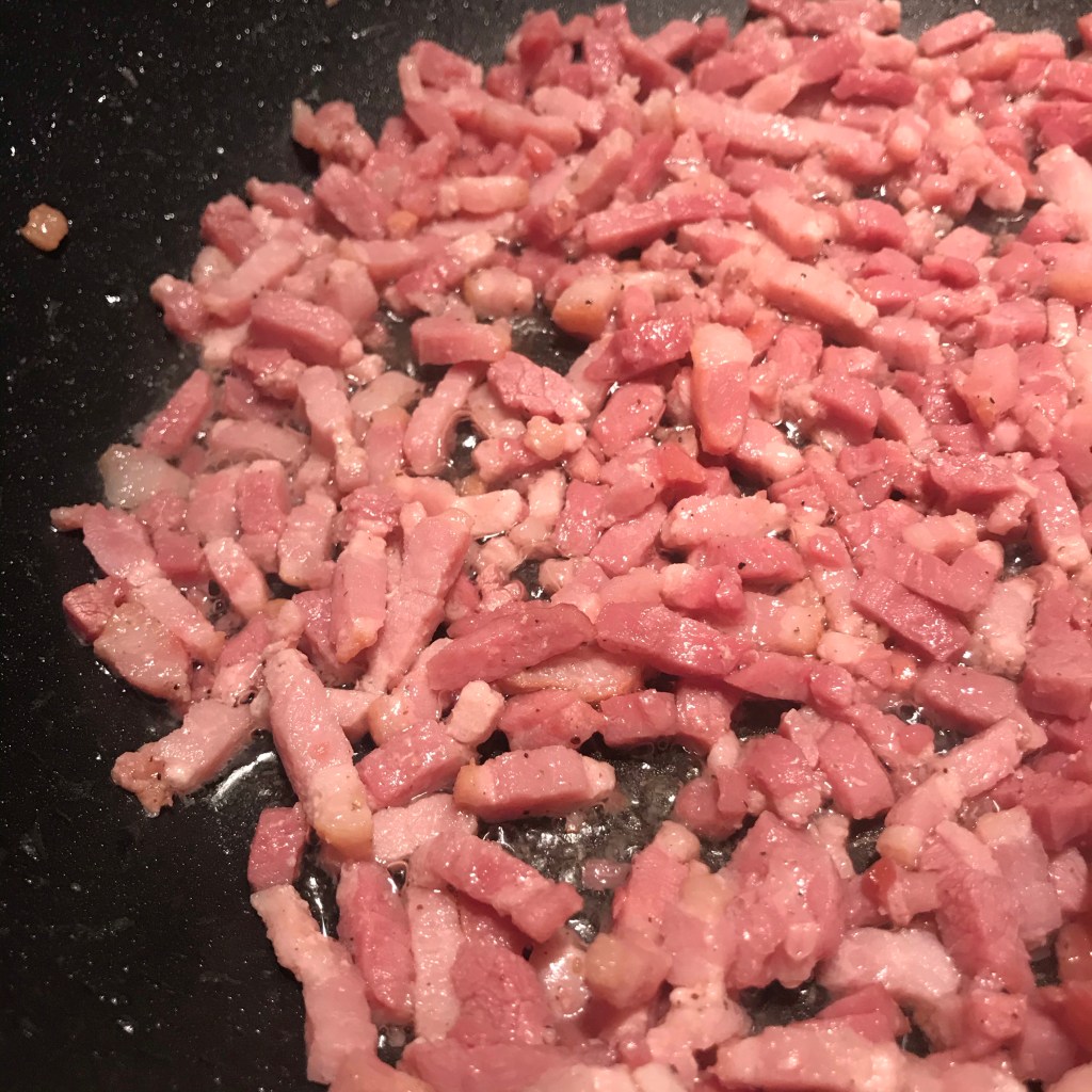 Scheutje olijfolie in een soeppan en fruit de ui en knoflook aan.