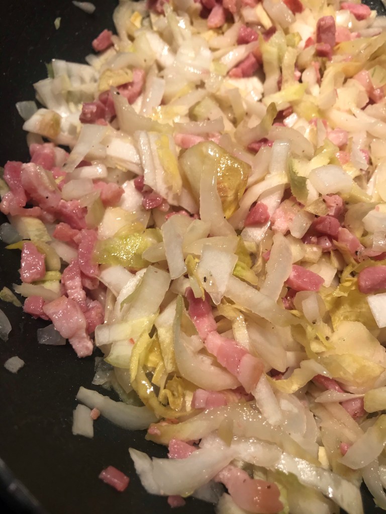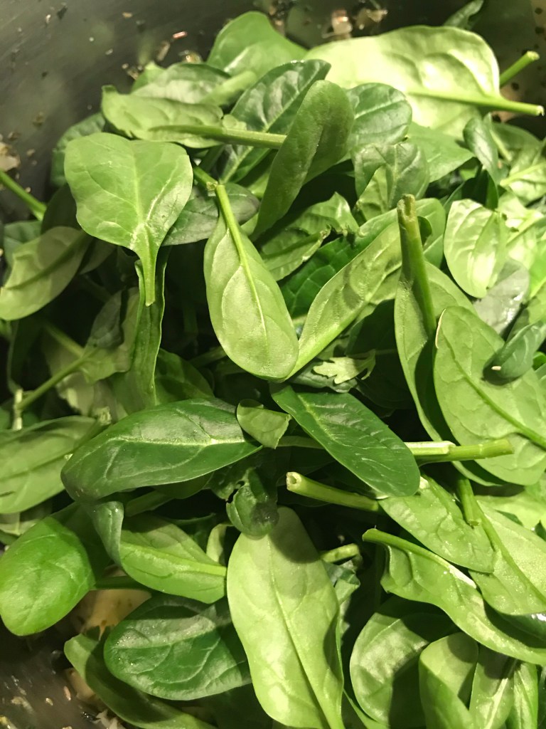 De spinazie voeg je niet direct in zijn geheel toe, gezien deze flink moet slinken.