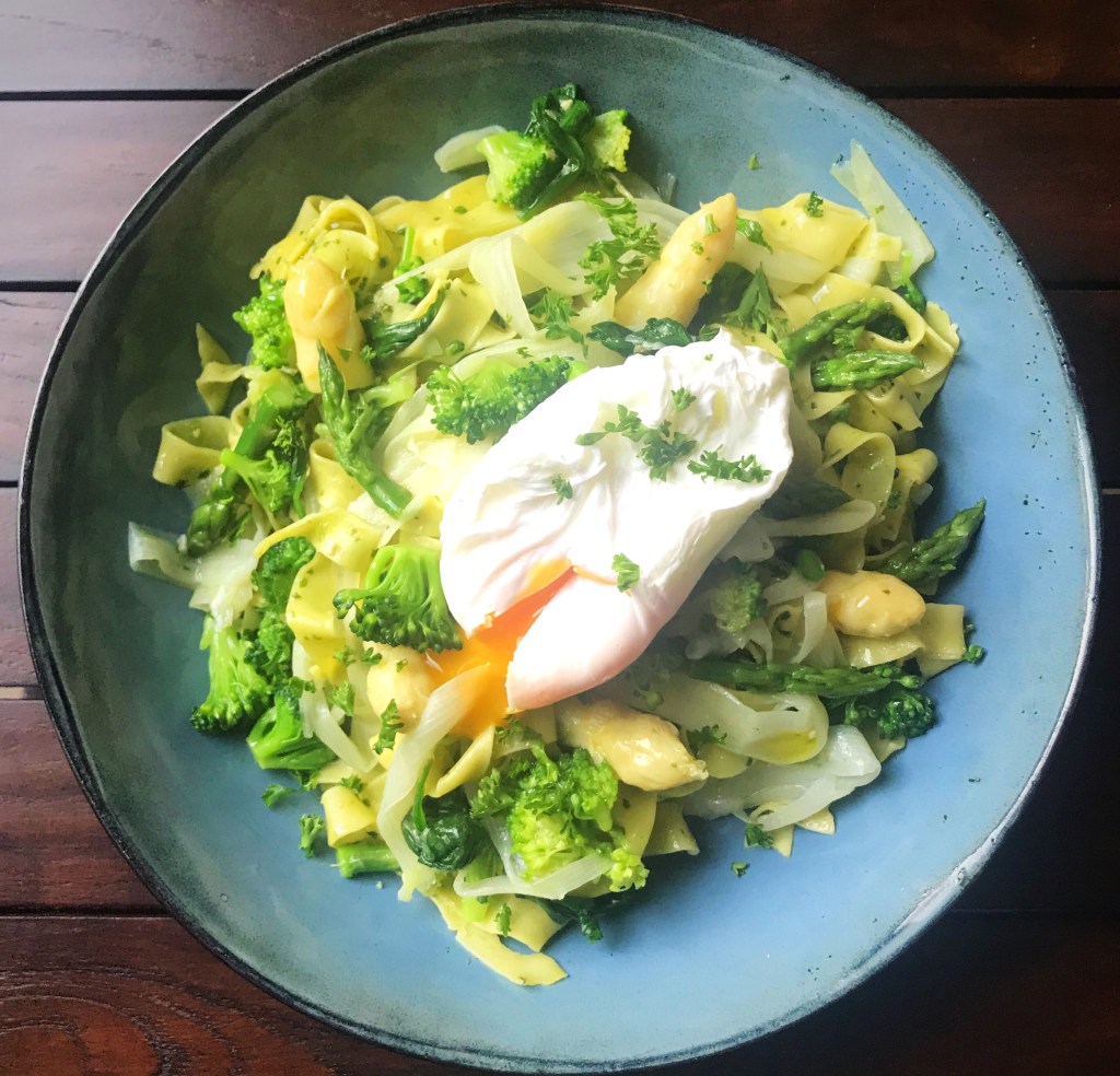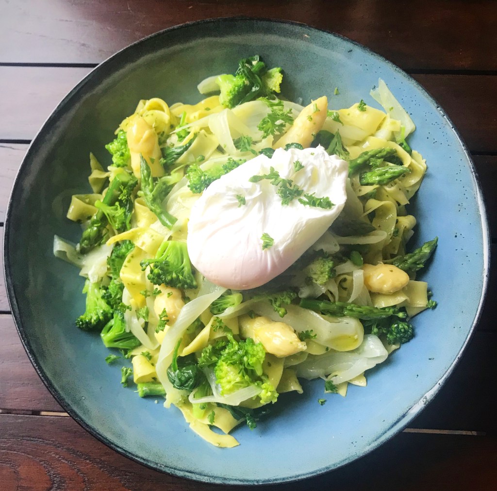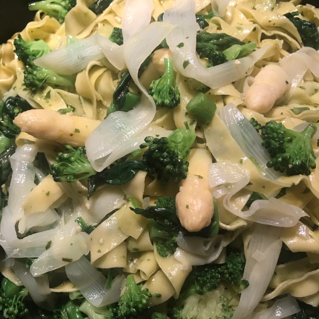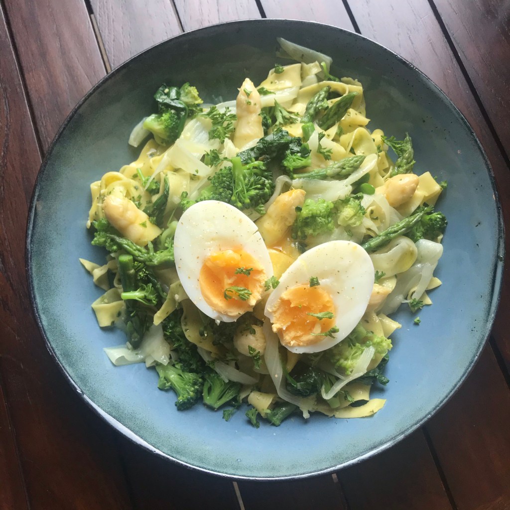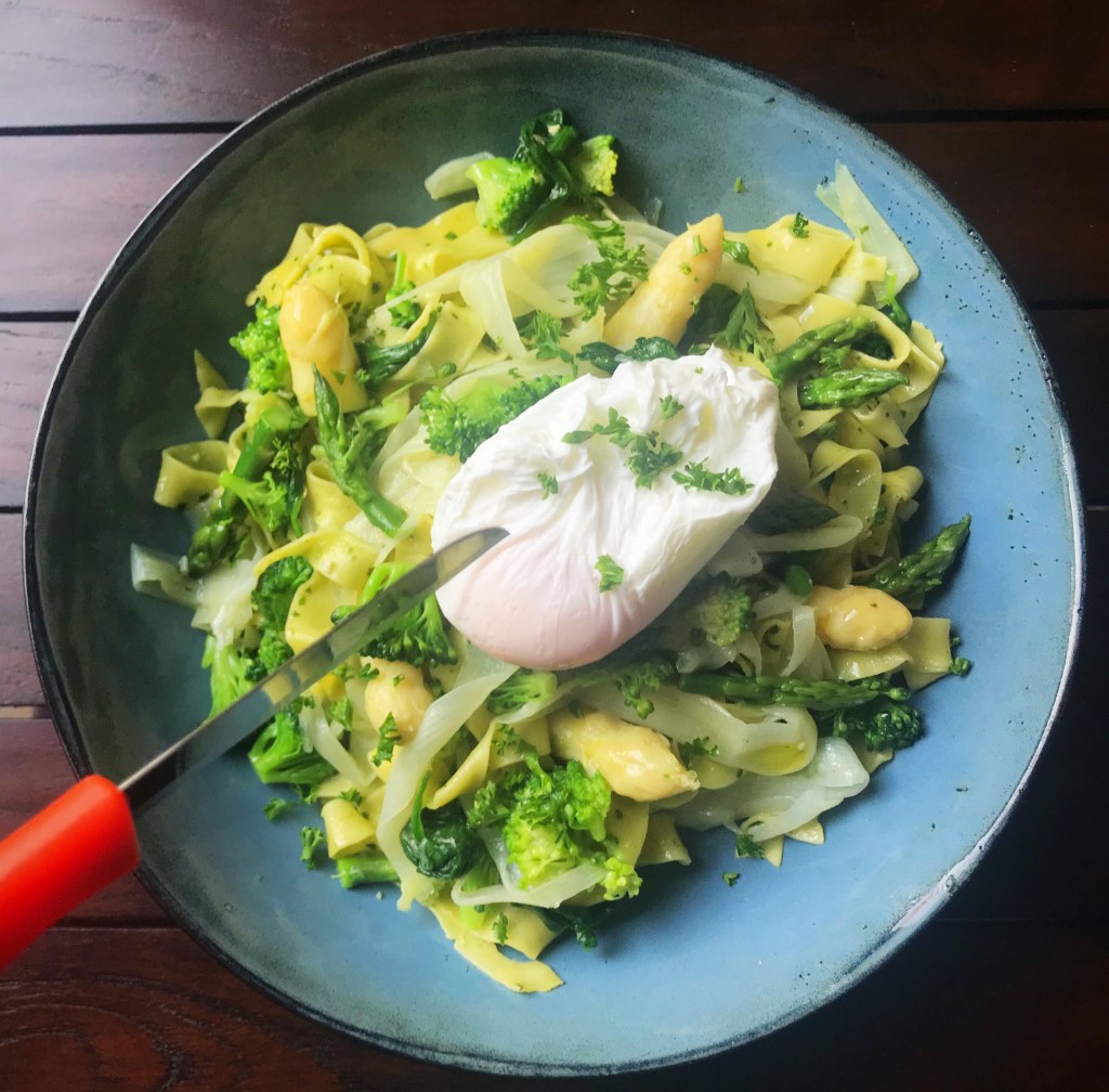 Afgieten en schep de sperziebonen voorzichtig door de saus.