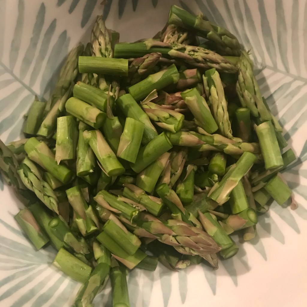 Sperziebonen schoonmaken en halveren.