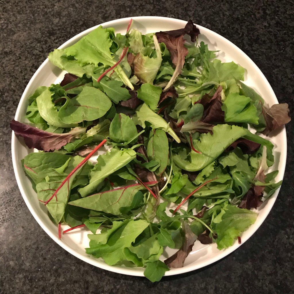 Leg de gemengde rucola salade op een groot bord of schaal.