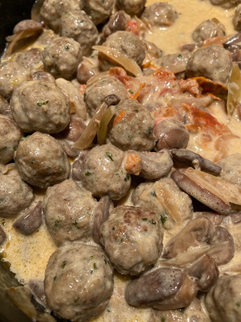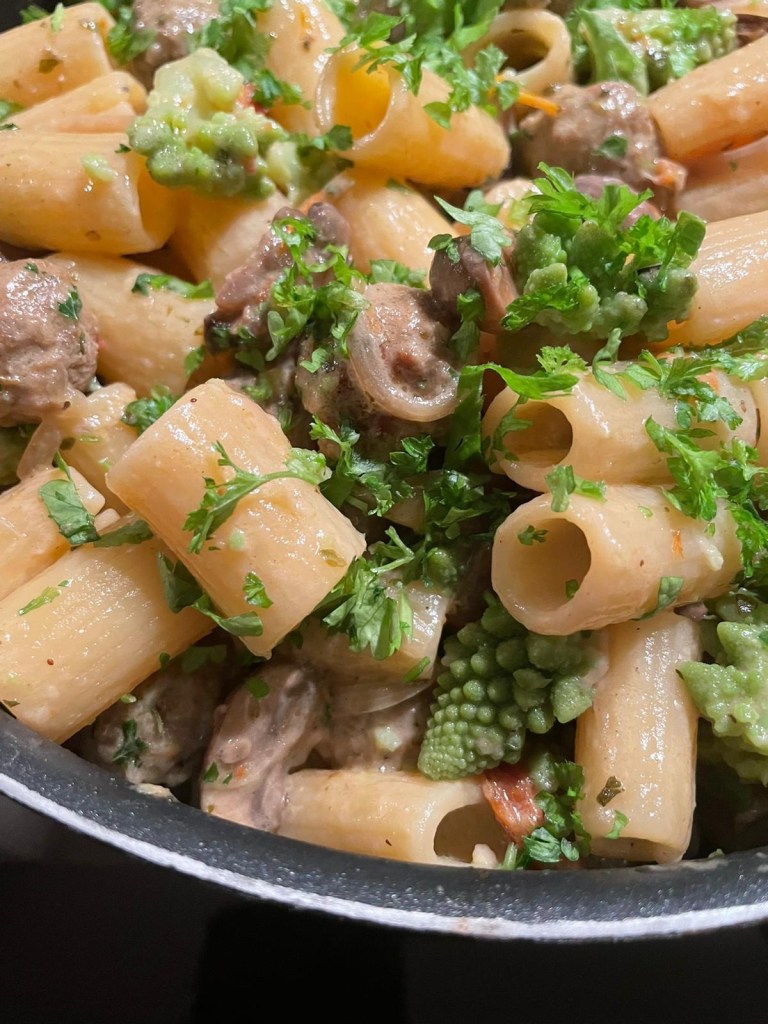 Pasta met Romanesco , Kastanjechampignons en Pesto Gehaktballetjes