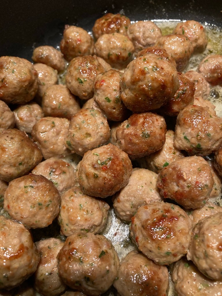 Verhit de olijfolie in een hapjespan en bak hierin de gehaktballetjes in 10-15 minuten bruin en gaar.