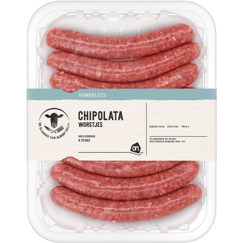 Snijd nu de chipolataworstjes in gelijke stukken van 2 cm en verdeel deze tussen het aardappel-groentemengsel.