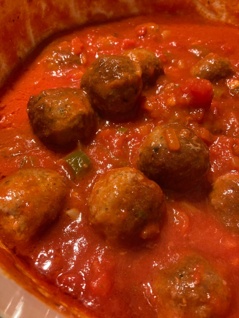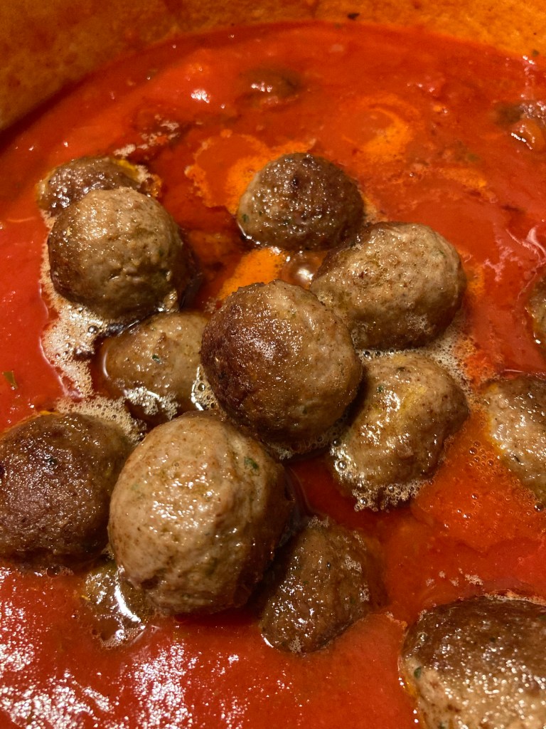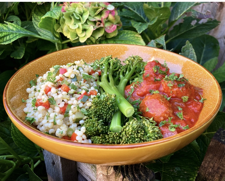 Mexicaanse gehaktballetjes in tacosaus en Parelcouscous met gebakken courgette en paprika