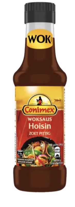 Giet de sperzieboontjes af en voeg deze samen met de champignons toe aan het kipmengsel.Voeg 1 flesje woksaus toe en roer het geheel 2 min. door op hoog vuur.