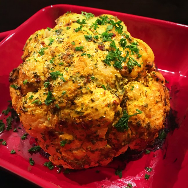 Controleer na 40 minuten hoe de bloemkool eruit ziet en bedek eventueel met een laagje aluminiumfolie als hij te snel verkleurt.