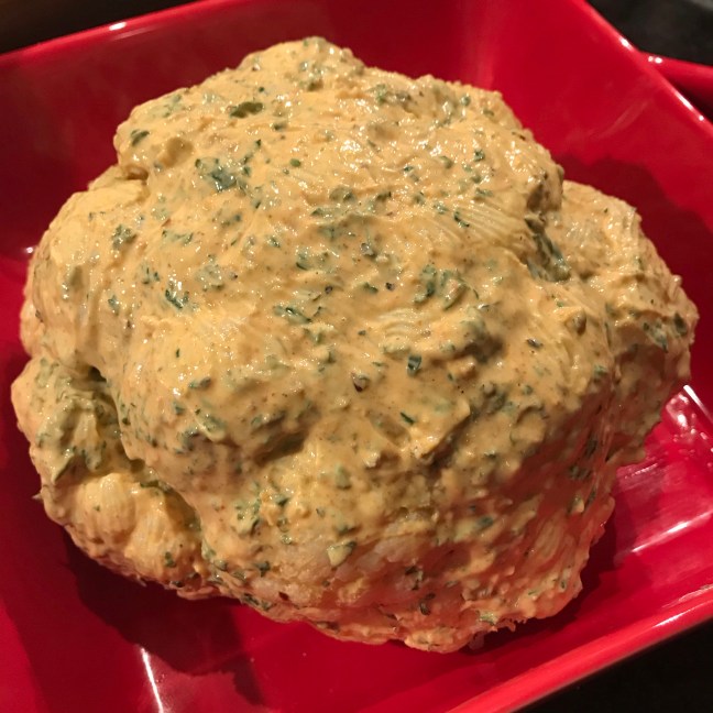 Plaats de bloemkool in het bakblik en bedruip met het yoghurtmengsel.