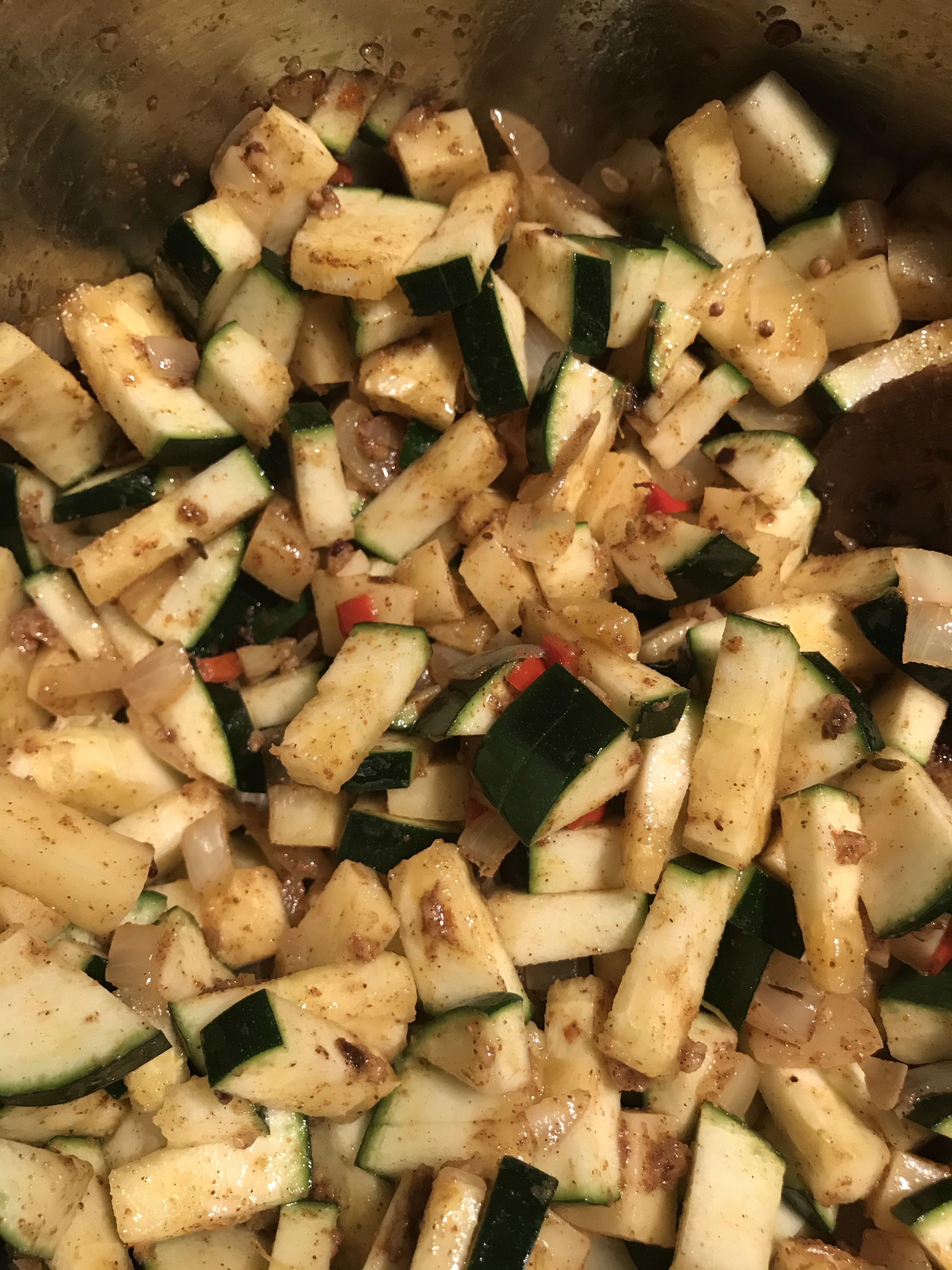 Voeg als laatste de ras el hanout toe en bak mee.