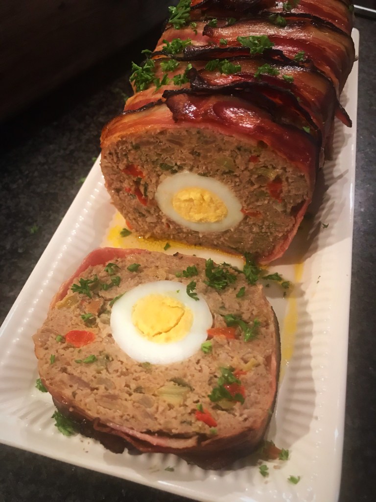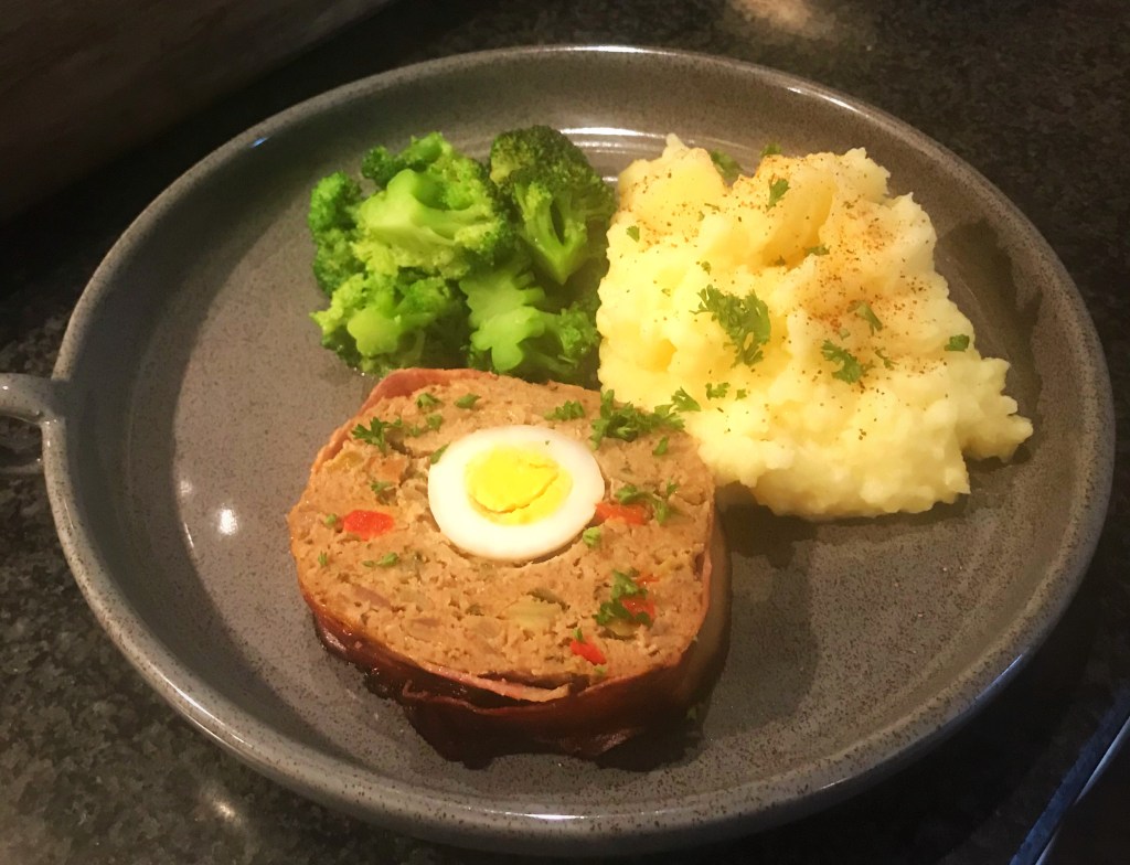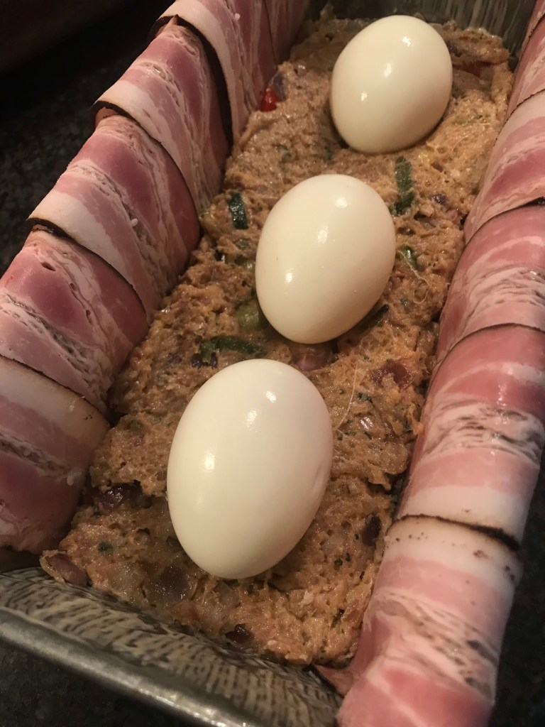Leg hier de eieren op en verdeel nu de rest van het gehakt over de vorm.