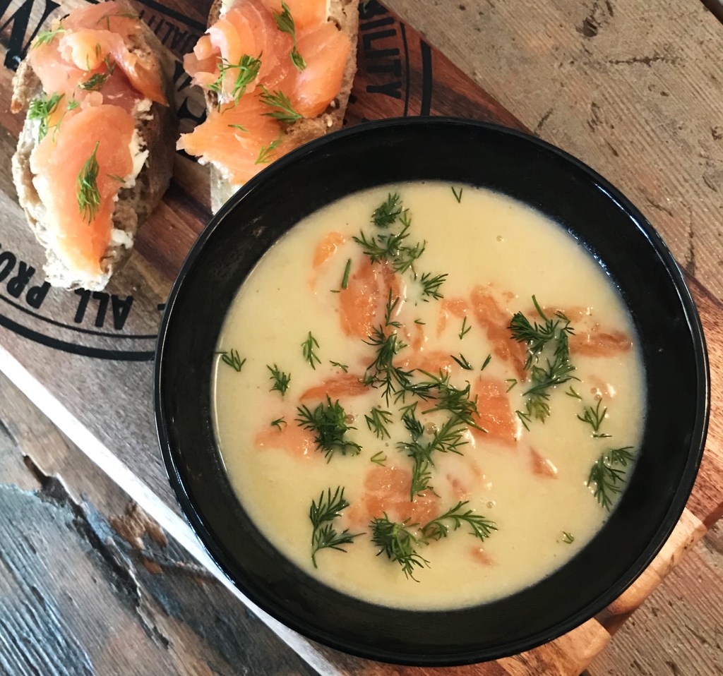 Voeg de kookroom toe en verwarm de soep nog 1 minuutje door.