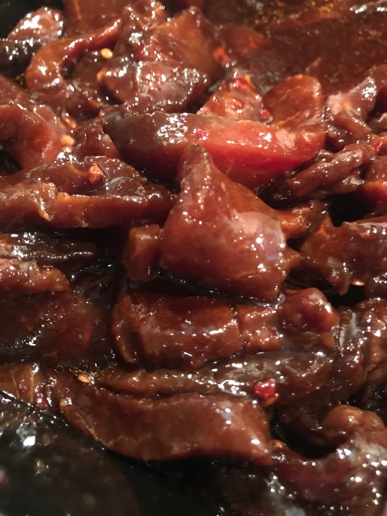 Haal de biefreepjes uit de marinade , gooi de marinade niet weg!