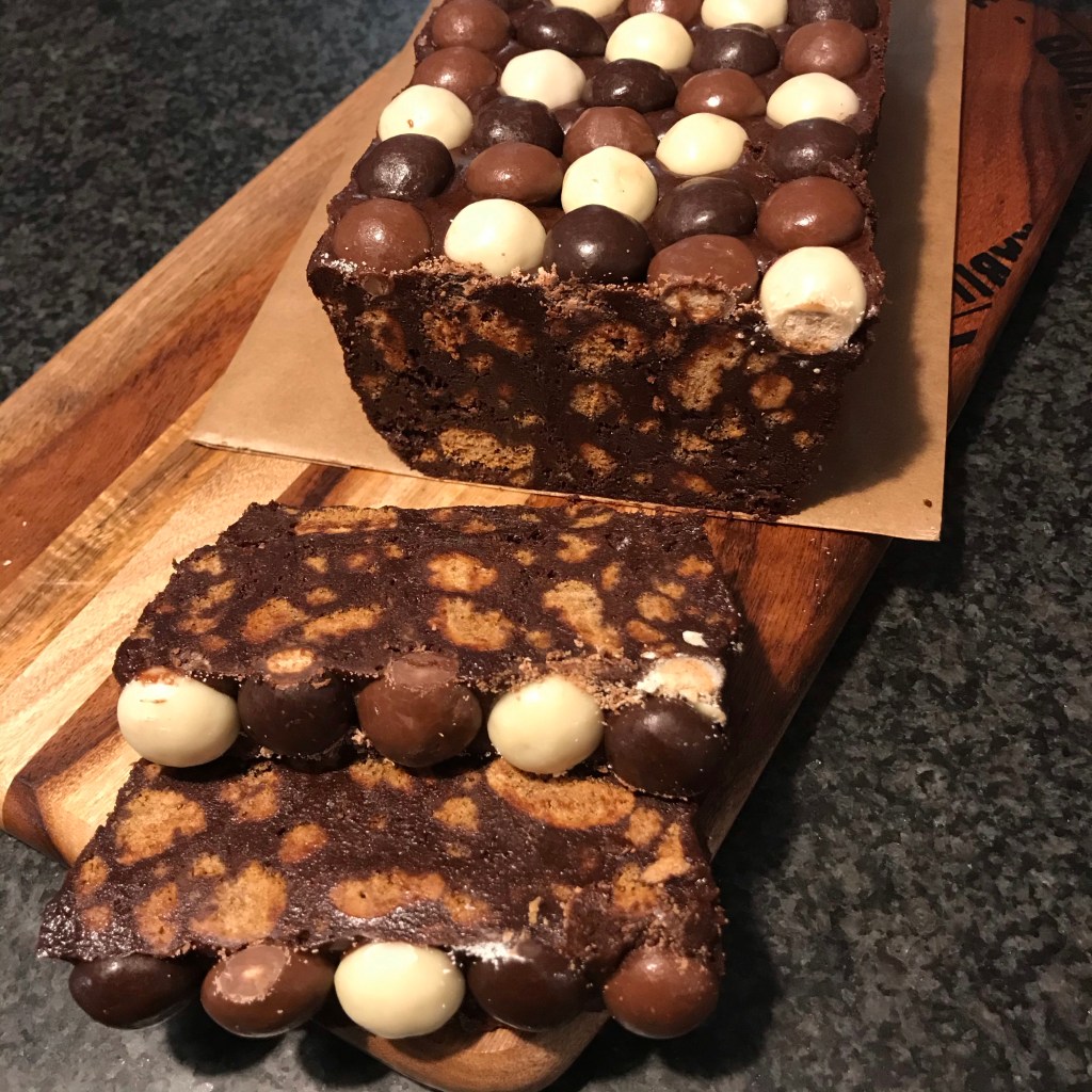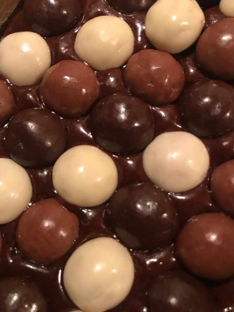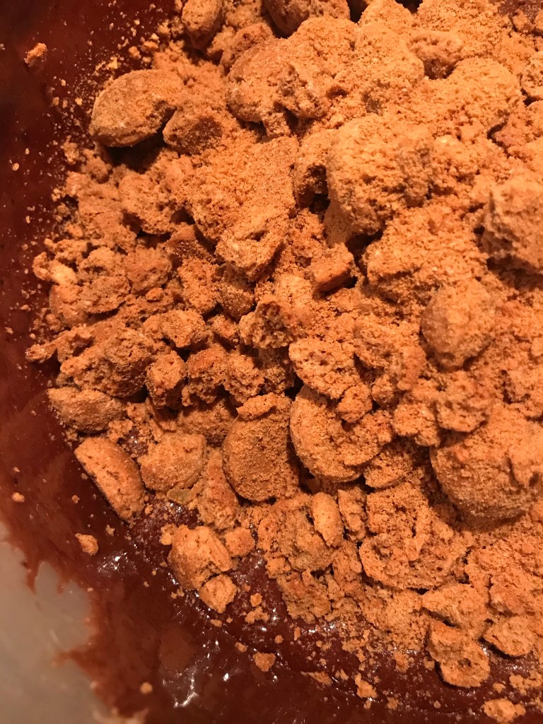 Verdeel de chocoladekruidnoten in rijtjes erover.