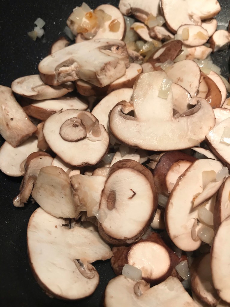 Ui fruiten , kastanjechampignons toevoegen en bak deze gaar