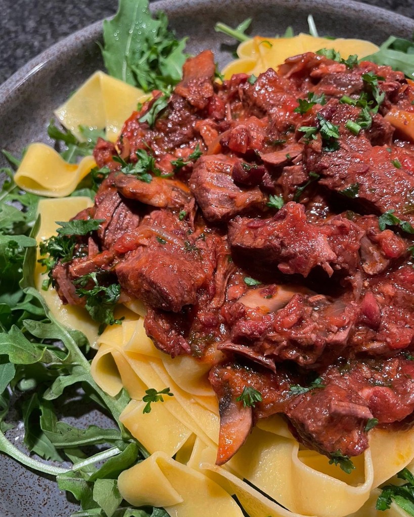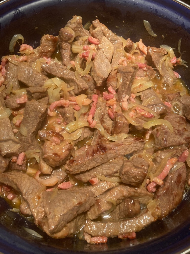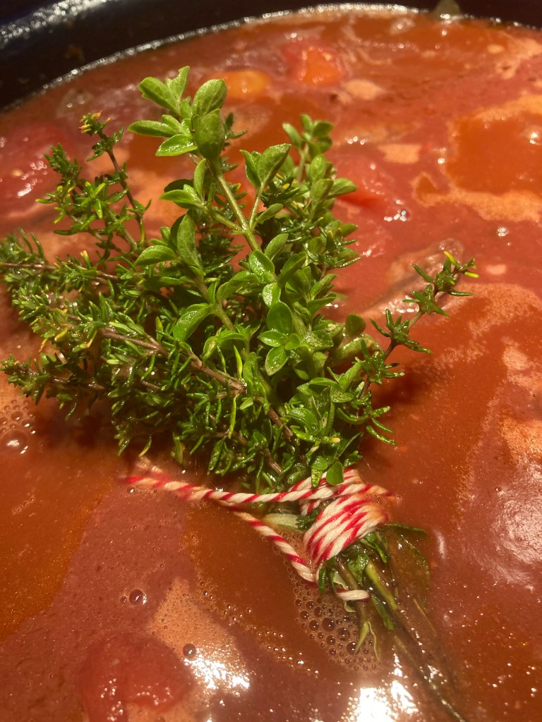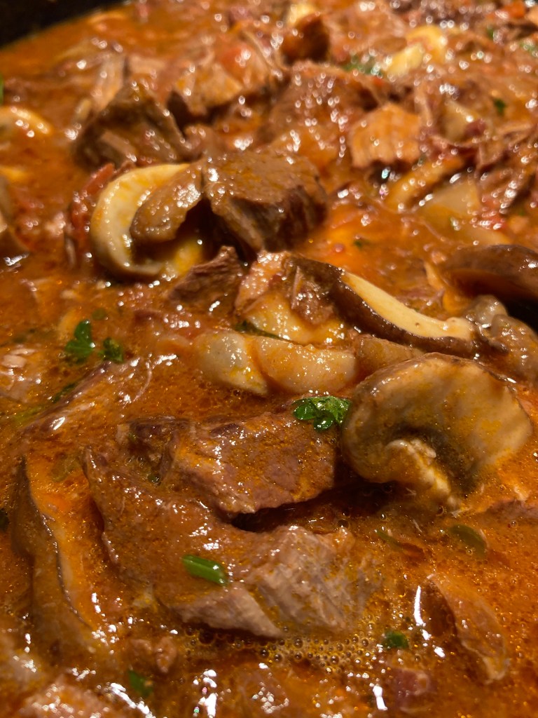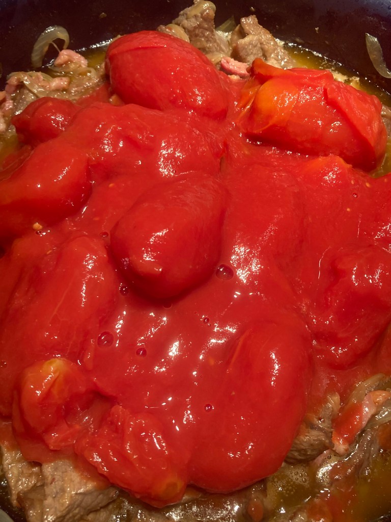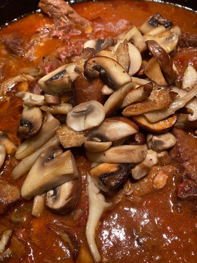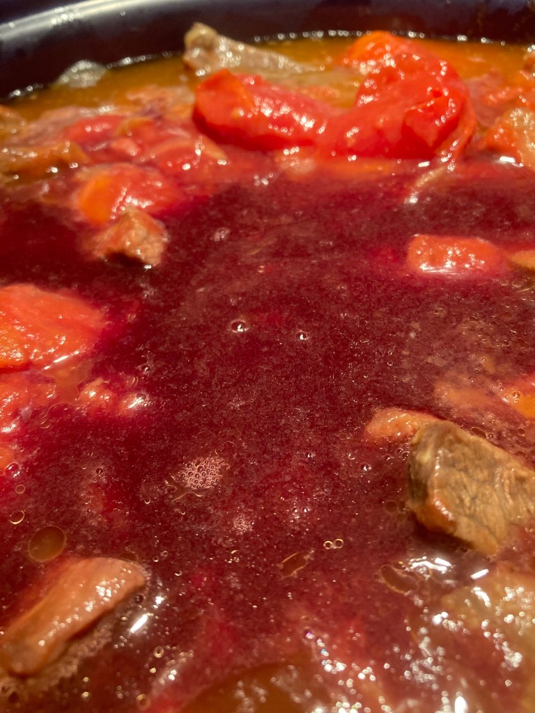 Voeg na 3 min. de runderfond toe , breng aan de kook.