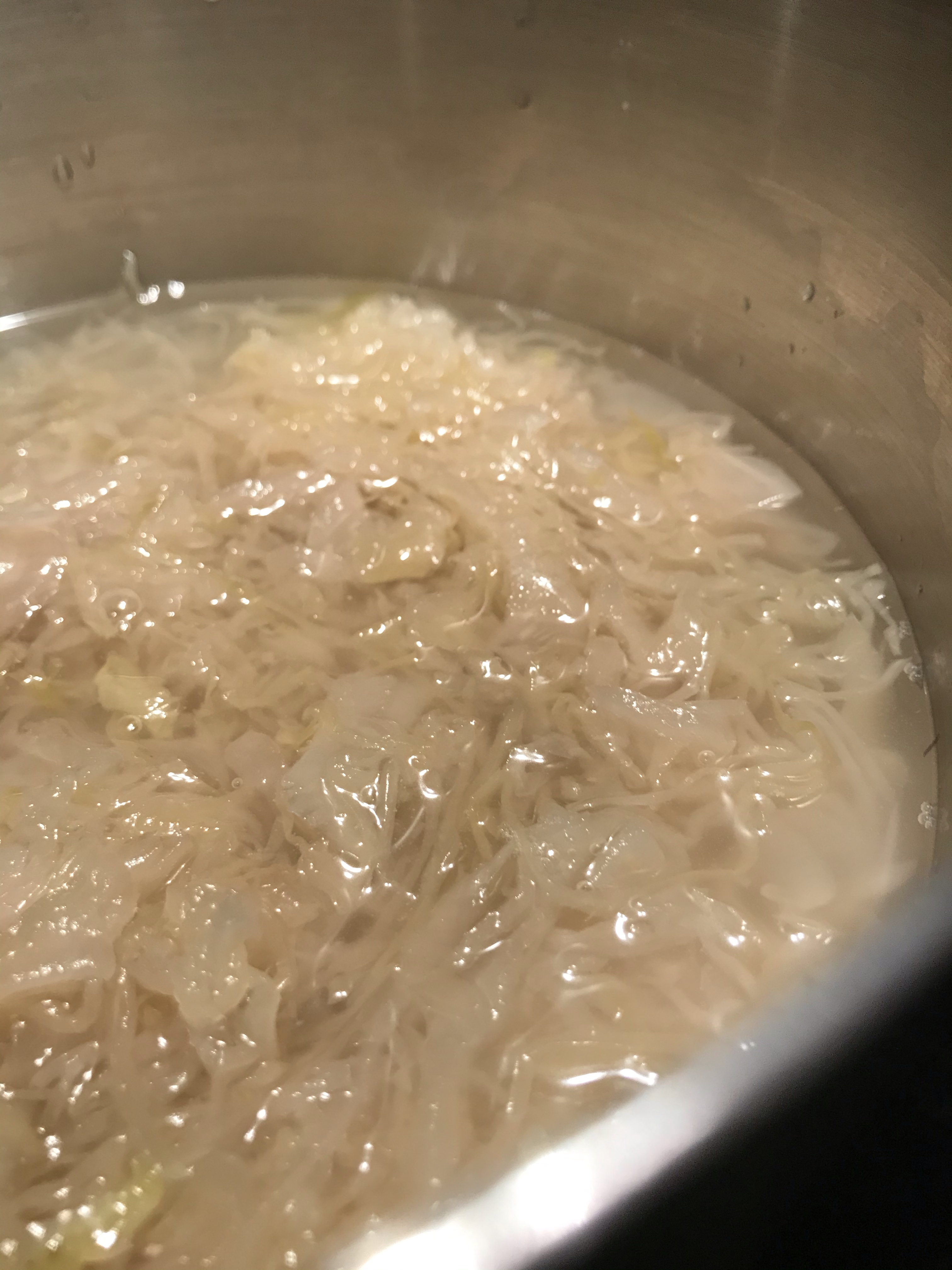 Voeg als laatste de hamblokjes toe.