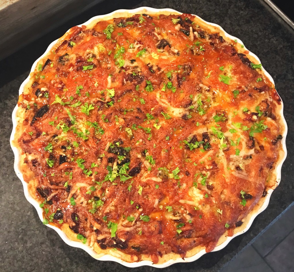Bestrooi met kaas en schuif deze dan voor ca. 20 -25 minuten in de voorverwarmde oven.