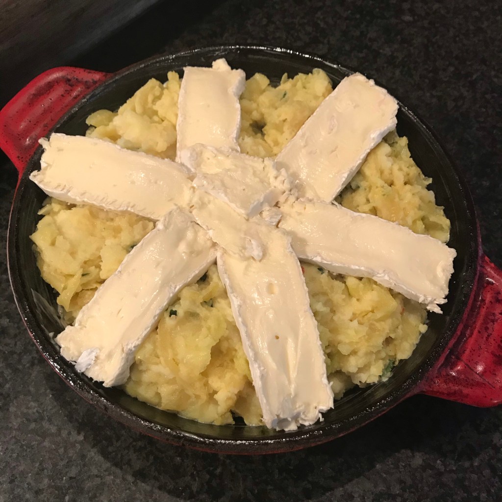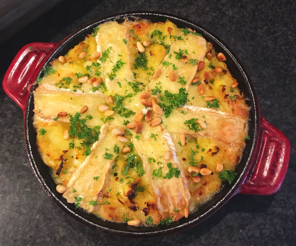 Schuif de ovenschaal in de oven onder de grill en laat de brie een beetje smelten.